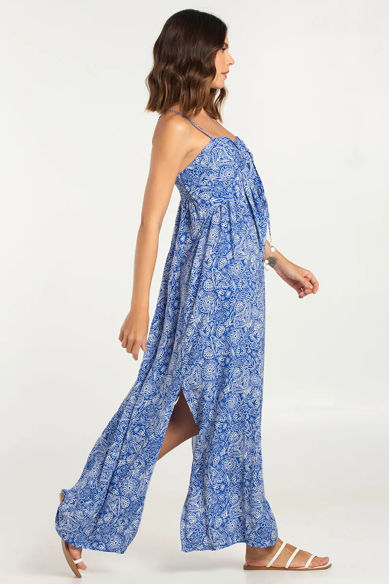 Vestido Longo Máxi De Alça Estampado Azul